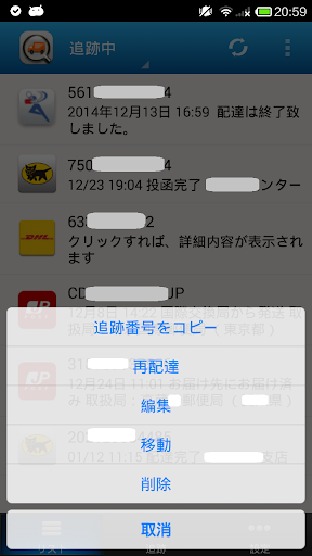 郵便、佐川急便、ヤマト運輸などの荷物を一括で追跡できるアプリです。荷物がどこにあるのかがシンプルに表示されるので、わかりやすく確認することができます。